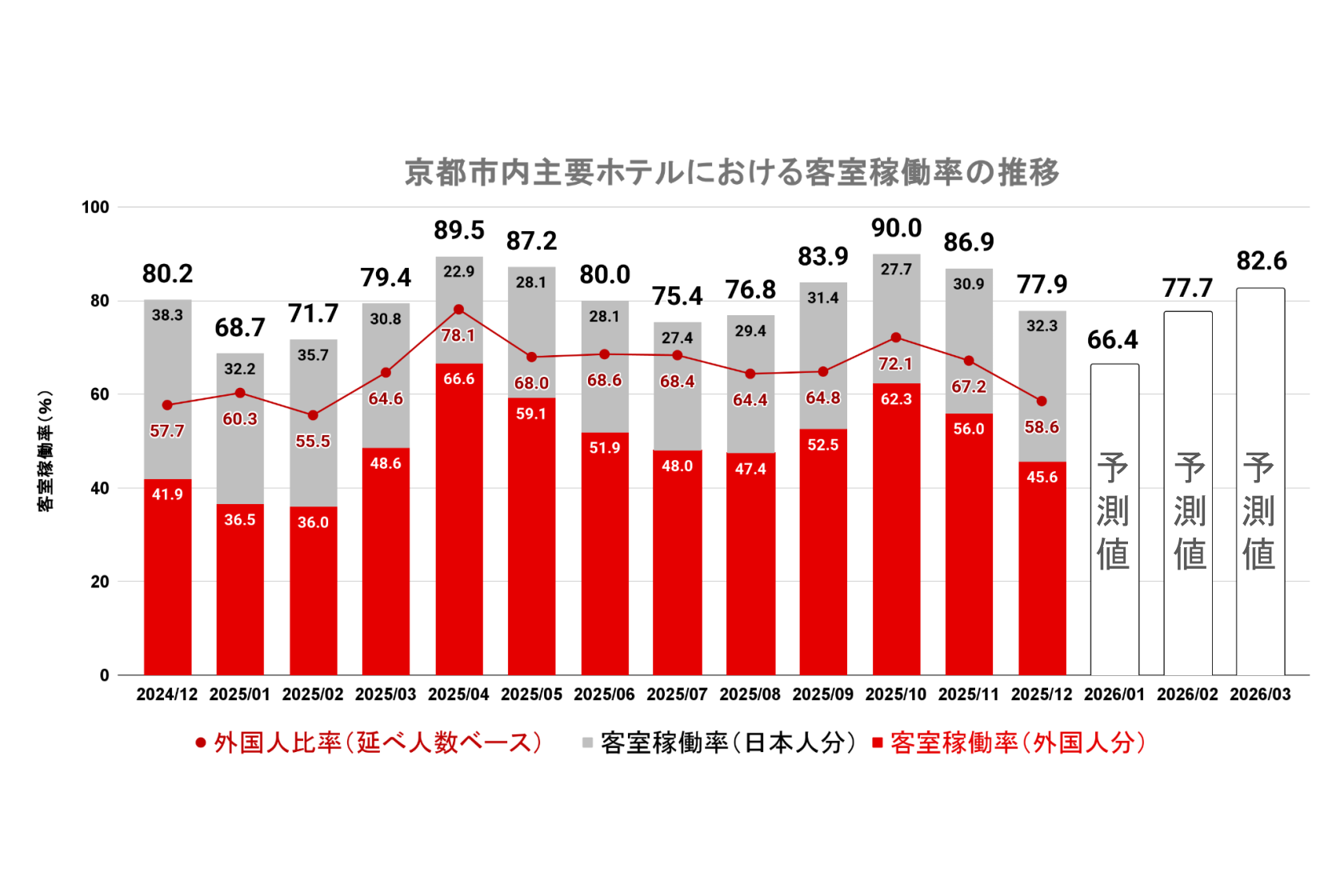 このたび、京都市観光協会データ月報(2025年12月)をとりまとめましたのでお知らせします。 今回のホテル統計の対象施設数は113軒、旅館統計の対象施設数は22軒です。