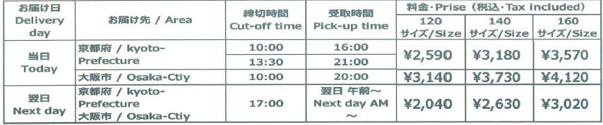 ※ 当日配送の「京都府内」については、福知山市、舞鶴市、綾部市、宮津市、京丹後市、伊根町、与謝野町、京都市一部、亀岡市一部、南丹市一部及び京丹波町一部を除く。