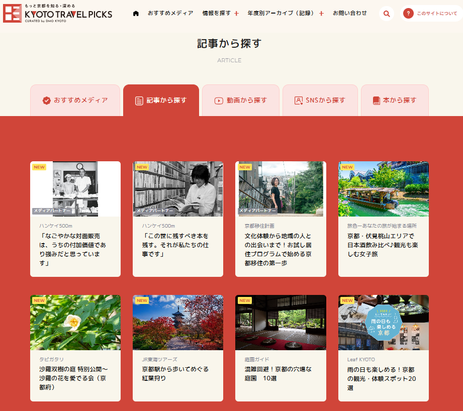 事業者の京都観光に関する記事・動画等を紹介するサイト