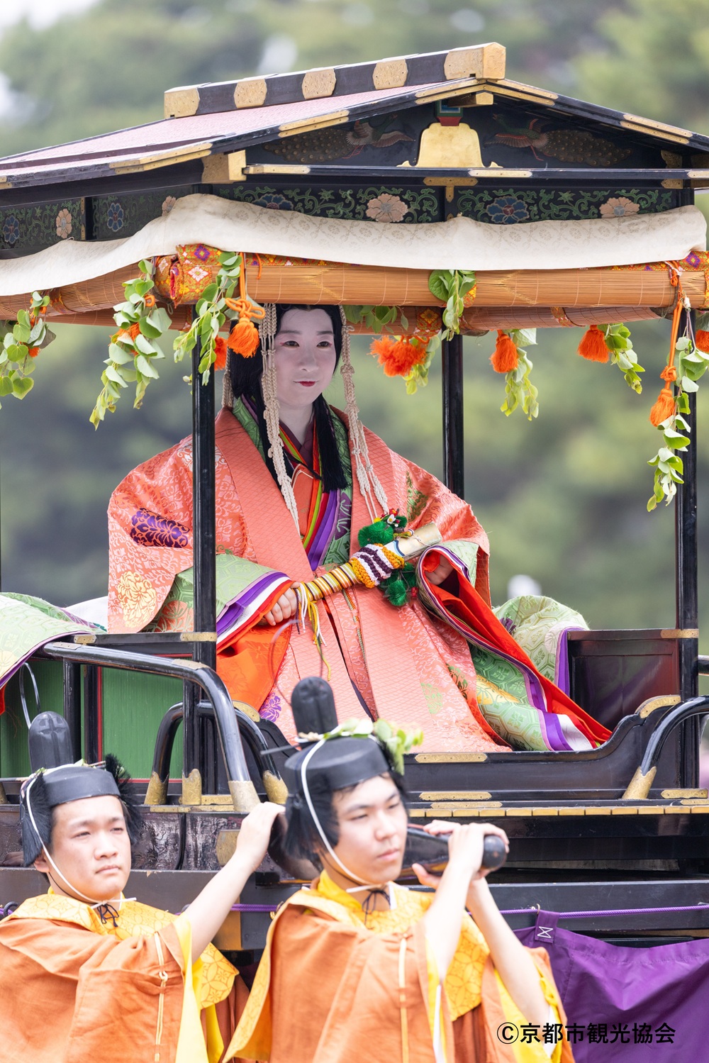 爽やかな初夏の京都を優雅な行列で彩る「葵祭」。約1500年前に始まったとされ、紫式部の源氏物語にも描かれた、賀茂御祖神社(下鴨神社)と賀茂別雷神社(上賀茂神社)の例祭です。 5月15日には約8キロもの距離を、平安装束をまとった人々が練り歩く「路頭の儀」が開催され、(公社)京都市観光協会では、京都御苑と下鴨神社参道に行列を安心安全にゆっくりとご覧いただける有料観覧席を設置しており、売上の一部を祭の保存・継承に充てております。