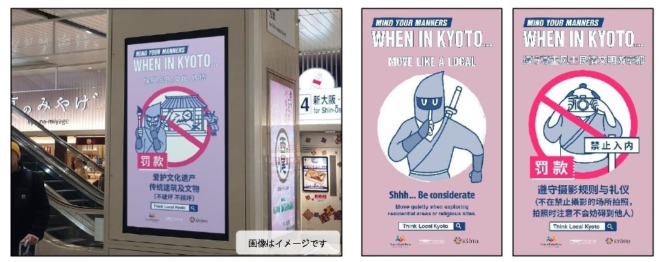 | 2023年(令和5年)2月 | 鉄道会社等と連携した啓発 ・JR京都駅周辺 ・京阪電車構内 ・近鉄電車構内 ・嵐電構内 ・関空リムジンバス ・関西国際空港 主体:京都市、京都市観光協会 |