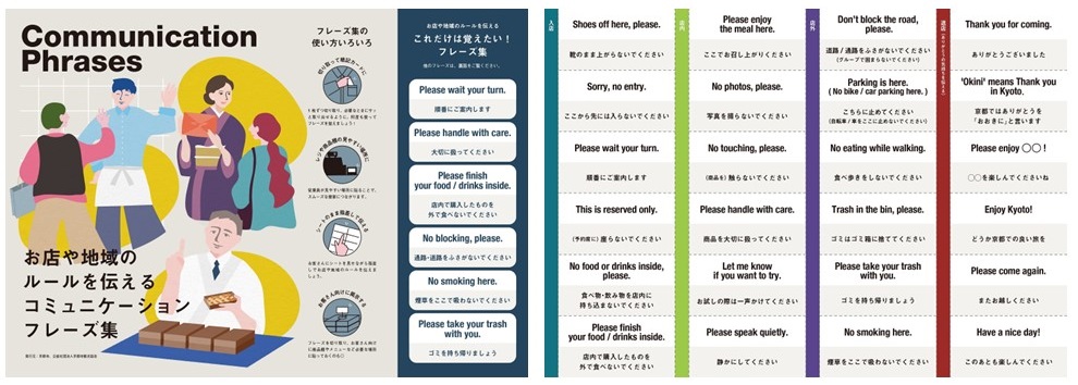 | 2025年(令和7年)1月 | 観光事業者向けマナー啓発フレーズ集(英語)の発行 主体:京都市、京都市観光協会 ![]() |